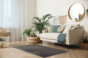 The Chiara Anthracite Grey (1012) rug by Acsento is made for interiors that need both depth and simplicity. Woven in Belgium from a blend of wool, viscose and polyamide, it offers a soft touch with reliable structure—perfect for high-traffic rooms.