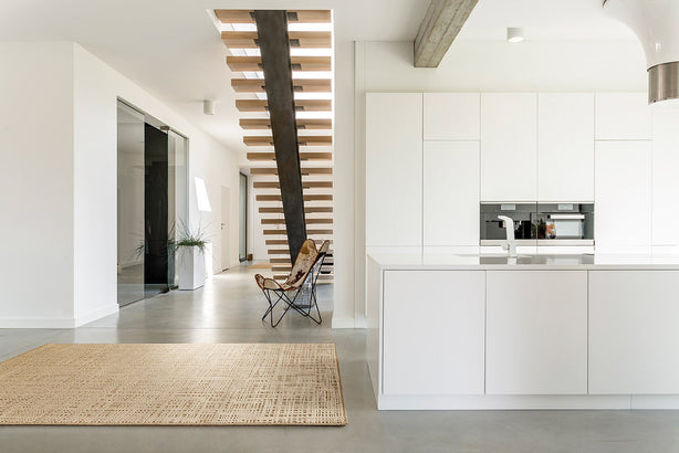 The broken grid motif adds structure without harshness—ideal for calm, minimal interiors with a focus on materials and light. Whether styled in a serene bedroom, living area, or reading nook, the Chiara 1097 Ivory Warm Beige introduces a gentle rhythm and visual warmth.