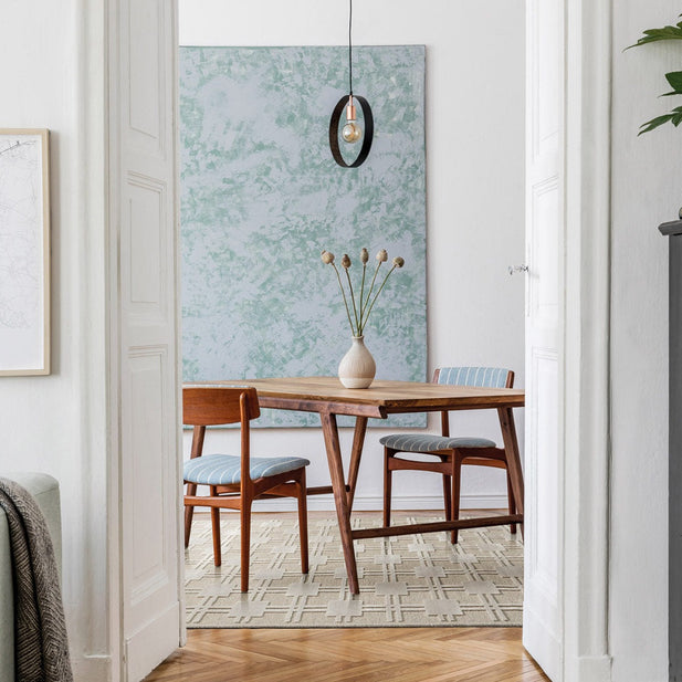 With its delicate tone and confident simplicity, the Chiara 3163 Ivory by Acsento is the kind of rug that feels like a natural extension of your space. Belgian-woven with a blend of wool, viscose, and polyamide, this flatweave offers a soft handfeel and refined durability.