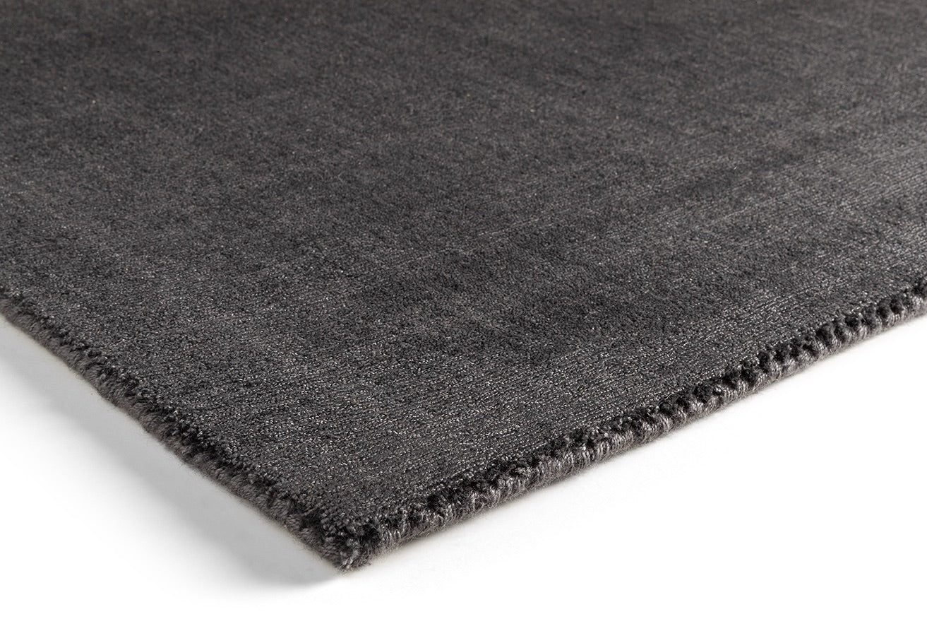 Style it under a sleek leather sofa to ground an urban living room, or place it beneath a modern dining table to add calm, charcoal contrast. It complements metal accents, raw wood furnishings, or pared-back minimalist schemes with ease.