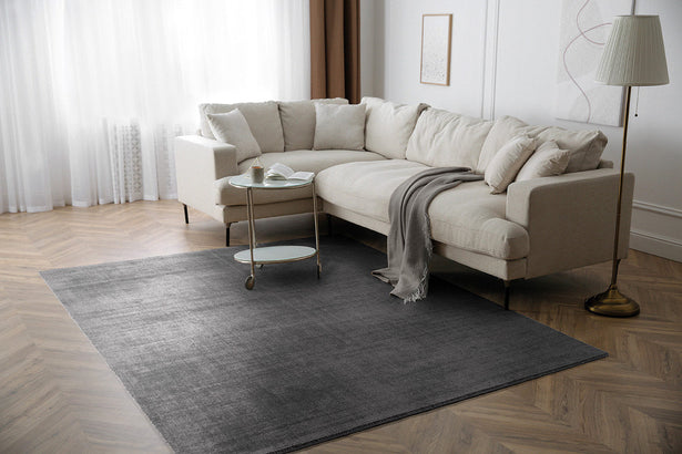 This is a rug built for real life: the tightly woven structure resists stains, lies flat under furniture, and has enough heft to stay put—even in high-traffic zones like hallways or living rooms. The subtle vintage finish softens the industrial grey, adding depth and sophistication without looking worn.