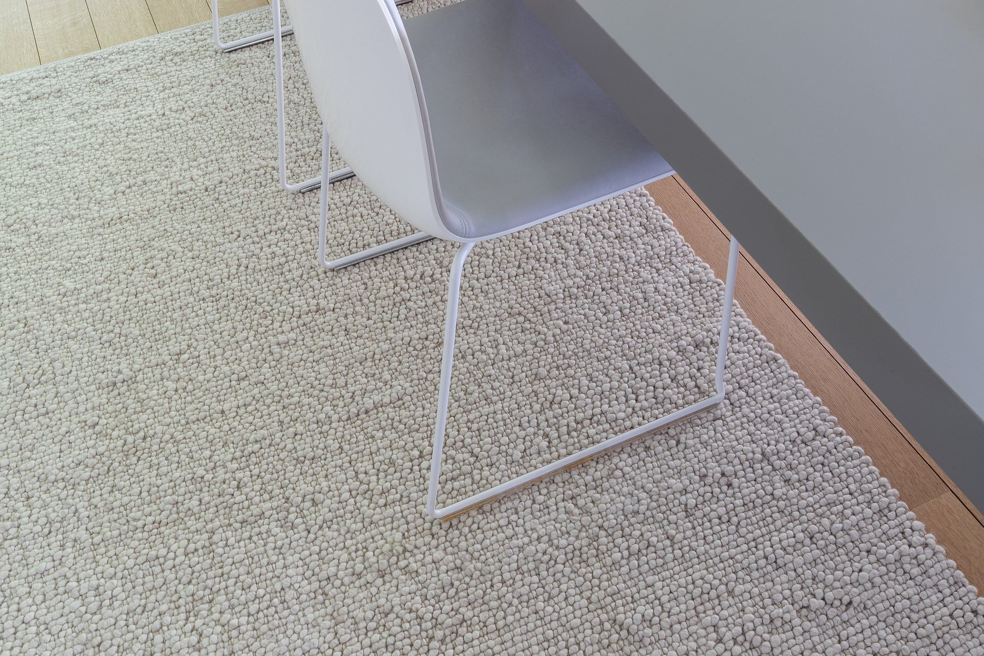 Its ivory-toned wool blend makes it ideal for bright, natural interiors. The structured weave adds gentle rhythm and depth, complementing Scandinavian, Japandi and minimalist spaces alike. The durable wool surface is easy to maintain, naturally resilient, and compatible with underfloor heating – perfect for daily living.