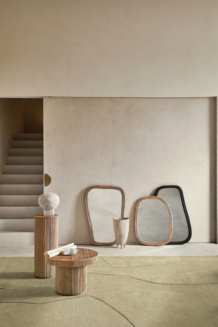 The Acsento Piana Stone Green rug is a distinctive piece that brings a touch of modern elegance to your interior. Handwoven in India from high-quality wool, this rug features an organic stone shape that adds a unique flair to any room.