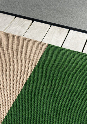 Inject vibrant energy into your outdoor space with the Deck Spring Green 496607 from Brink & Campman. Featuring a modern two-color block design in fresh spring green and natural beige, this rug creates a lively yet balanced statement that complements any garden, balcony, or terrace.