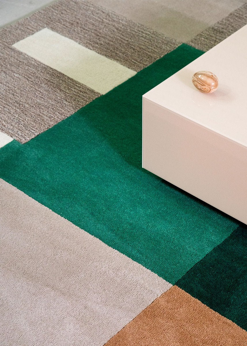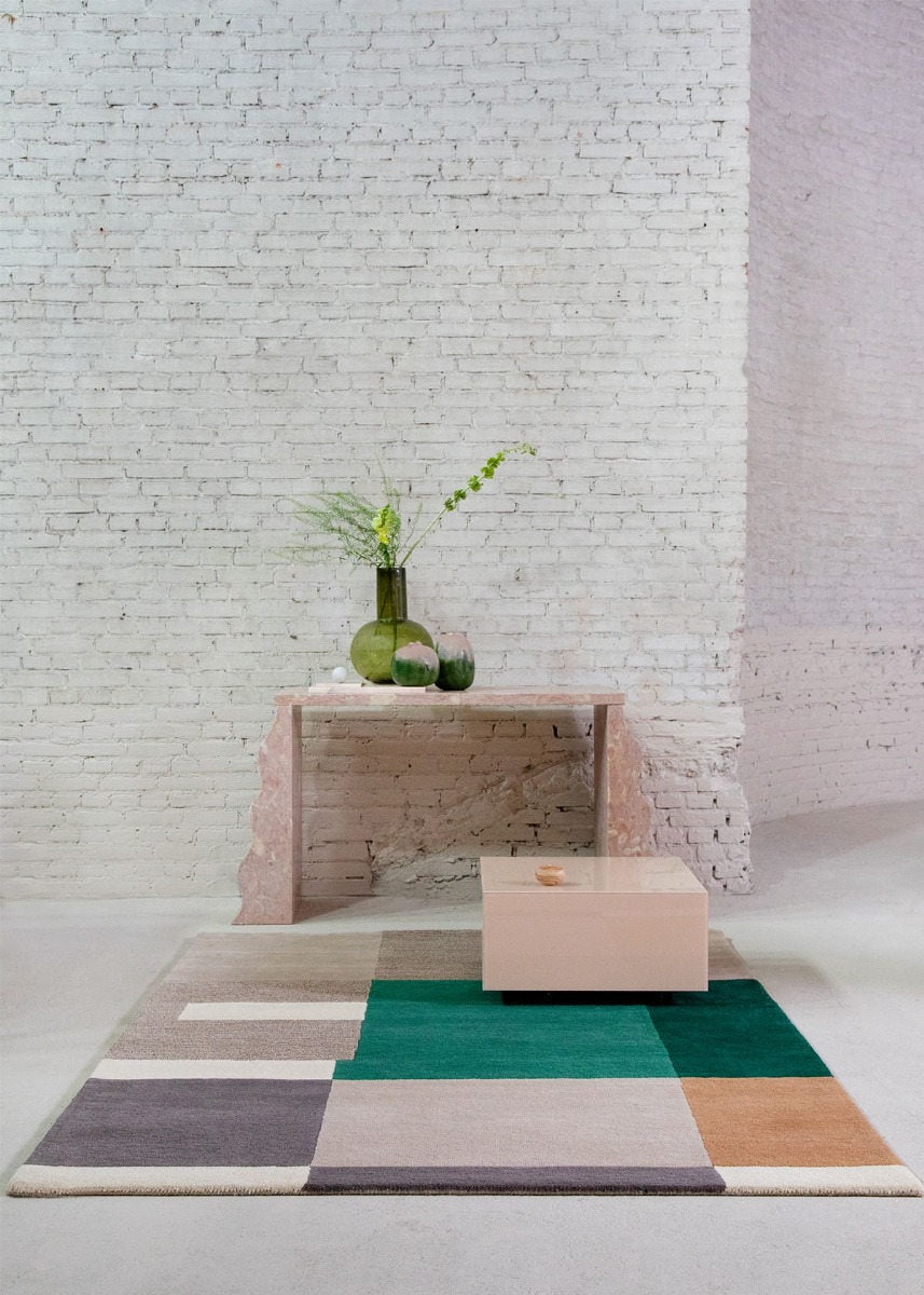 Pair this rug with light oak or ash wood furniture and neutral walls to keep the atmosphere airy and serene. Add a few green plants or soft textiles to pick up the subtle green accents and bring your room to life.