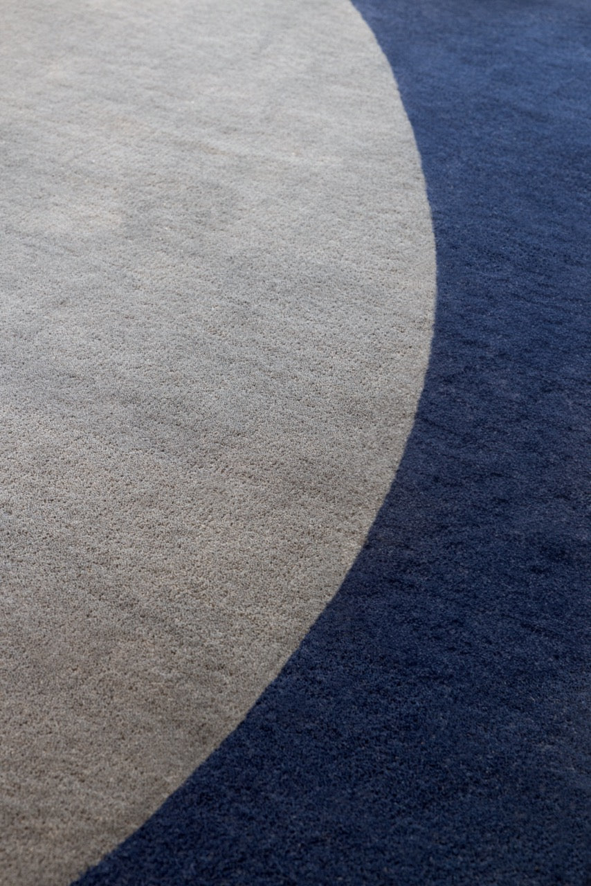 The cotton and latex backing ensures the rug remains stable and secure, maintaining its sculptural form over time. Available in standard sizes and custom made-to-measure options, the Element Arp Blue adapts perfectly to your space.