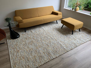 The Brink & Campman Grain 013506 is a meticulously handwoven flatweave rug that introduces a touch of warmth and sophistication to your living space. Crafted in Hungary from 100% pure new wool, this rug features a harmonious blend of subtle ochre and ivory hues, creating a serene and inviting atmosphere.