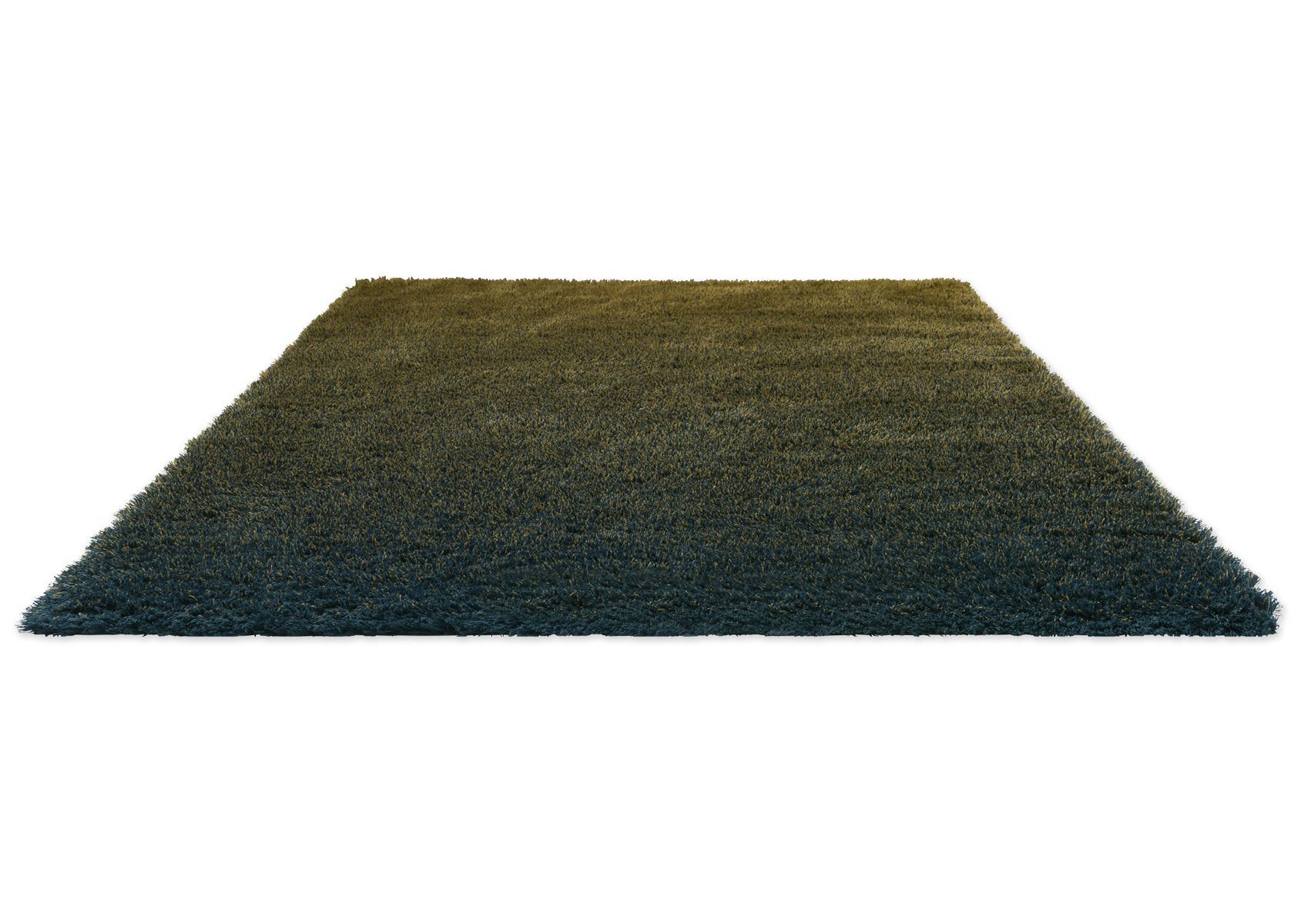 Elevate your space with the rich hues of the Shade High Brass Indigo 011908, a dense handtufted wool rug crafted in the Netherlands. This high-pile beauty features a dynamic gradient flowing from warm brass tones to deep indigo, creating a dramatic and sophisticated statement.