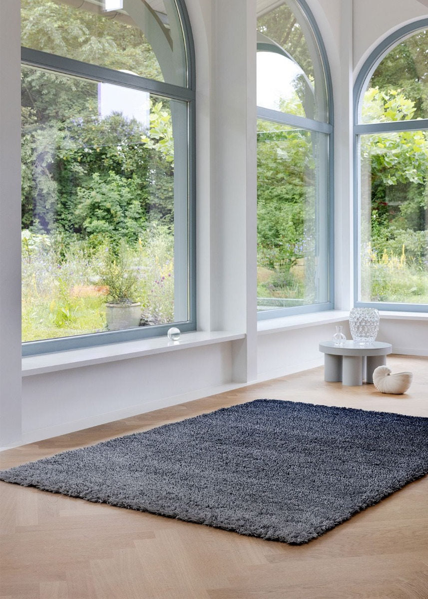 The gradient’s cool tones bring a serene, contemporary feel that complements minimalist, Scandinavian, and modern interiors. Despite its plush texture, the low-maintenance high pile is practical for everyday living.