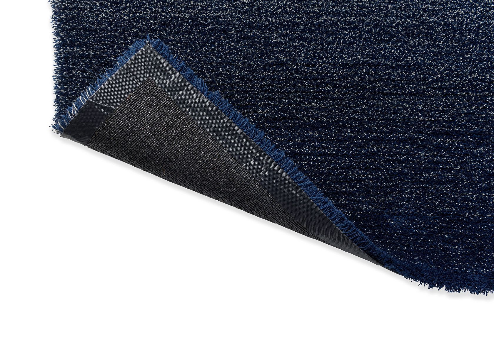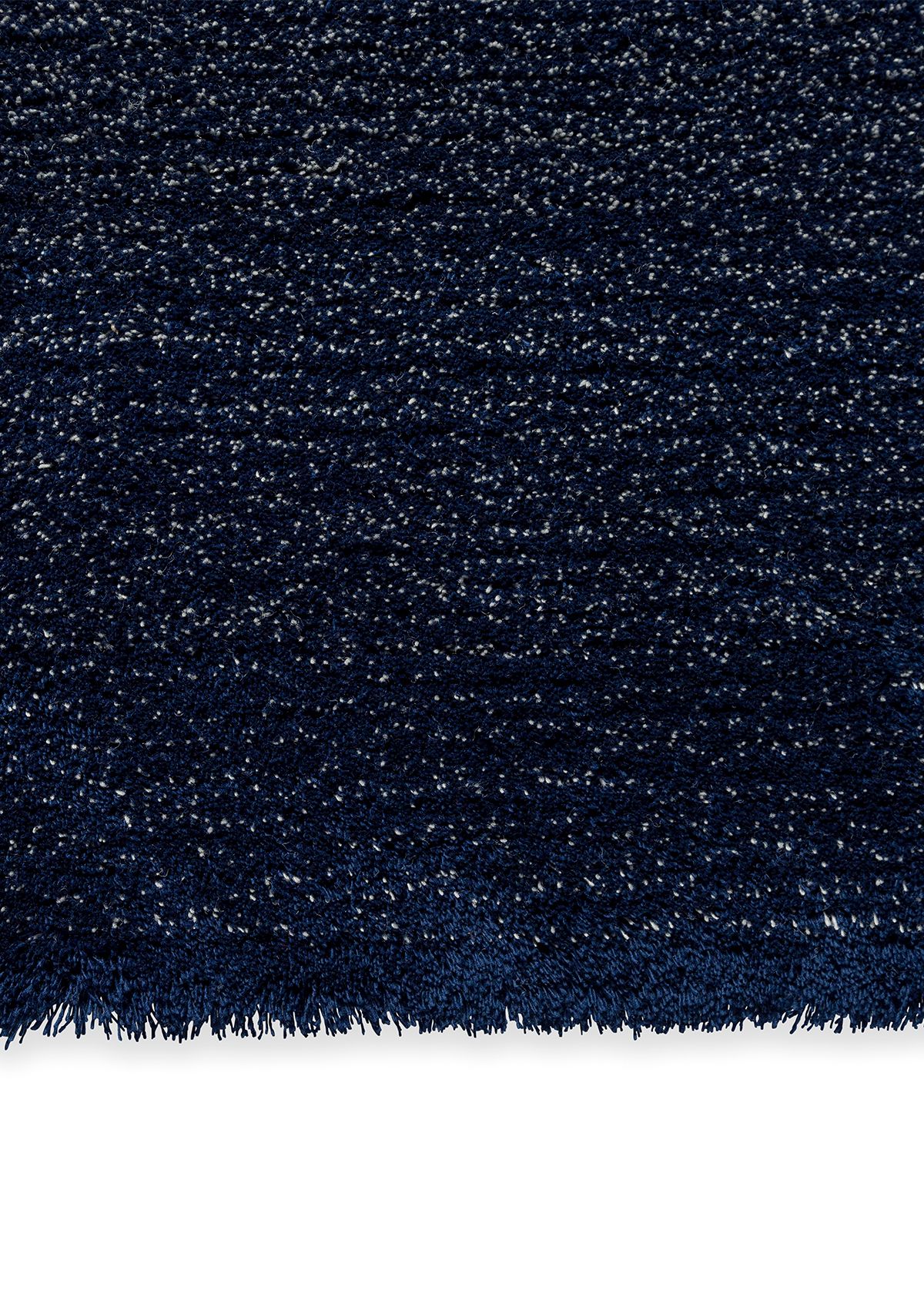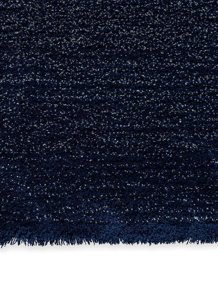 Complement this rug with sleek metal accents and light grey upholstery for a refined, modern look, or add cozy throws and cushions in navy and silver for layered warmth.