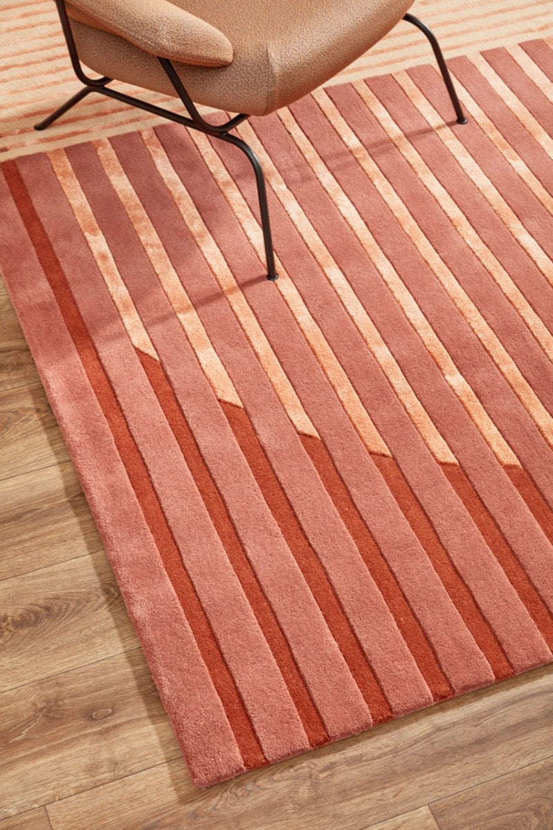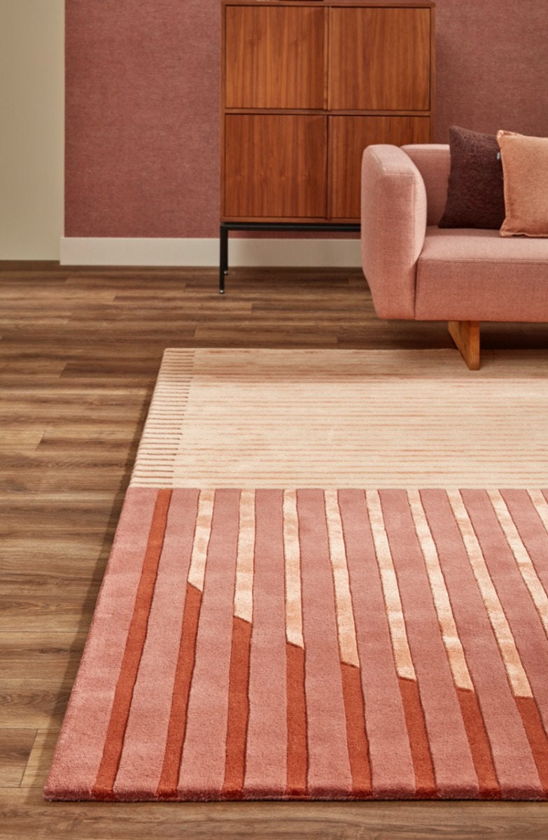 Transform your space with the Brinker Carpets Fano Lychee carpet, a stunning mix of geometric and striped patterns that effortlessly enhances any dining or living room. Made from high-quality wool, this hand-tufted masterpiece not only adds warmth underfoot but also brings a touch of retro-modern elegance to your home.