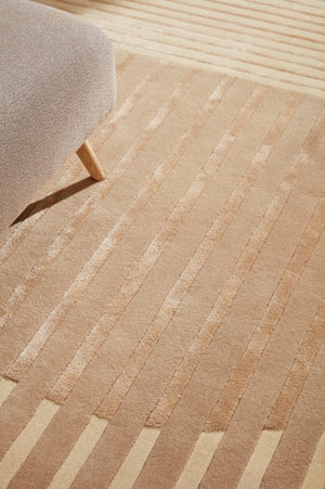 Introducing the Brinker Carpets Fano White Beige, a handtufted wool rug perfect for adding a touch of Scandinavian, retro, or modern style to your living room or dining room. Available in sizes 170 x 230 cm and 200 x 300 cm, this rug is not only stylish but also anti-allergic and anti-static. The beige color and geometric stripes design make it a versatile addition to any space. Experience the quality and craftsmanship of Brinker Carpets with the Fano White Beige rug.