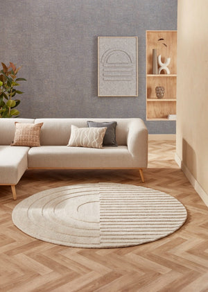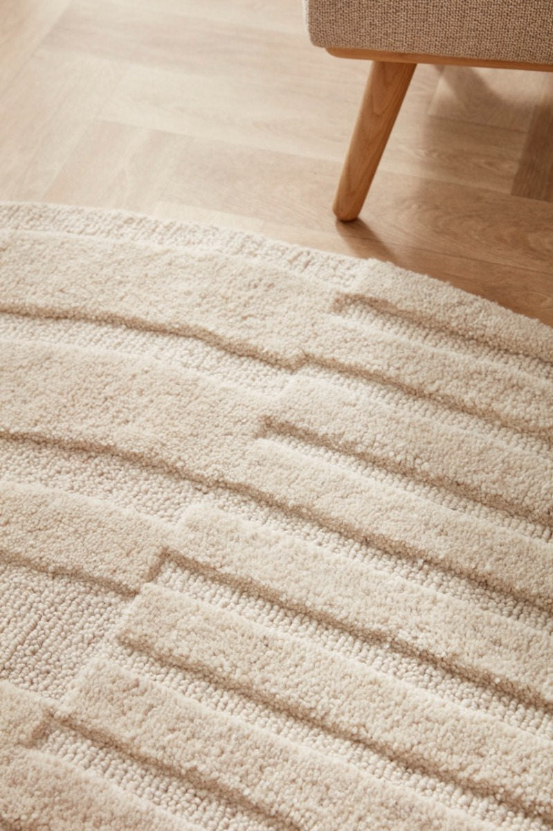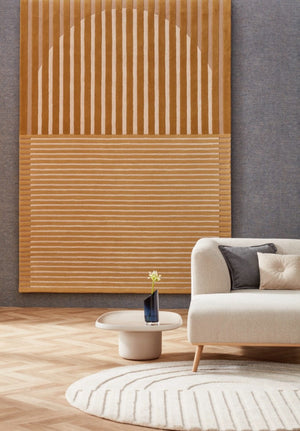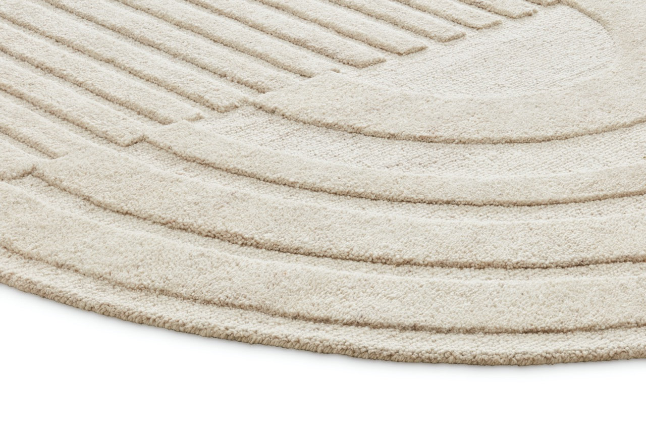 Beyond beauty, the Monza Girare is built to last. The robust wool fibers bring natural durability and breathability, while viscose adds a luxurious sheen and softness underfoot. Its low 1.4 cm pile height strikes a perfect balance — plush enough for comfort, yet structured enough to maintain its striking form and practical resilience, including compatibility with underfloor heating.
