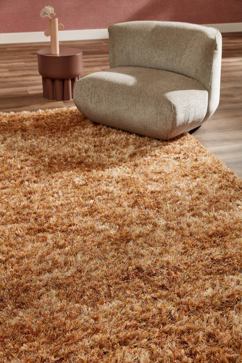 Transform your living space with the New Paulo Gold 030 carpet from Brinker Carpets. This beautiful handwoven piece features a vibrant orange hue that adds warmth and character to any room. Made from high-quality polyester, it offers durability while maintaining a soft, shaggy texture that feels luxurious underfoot.