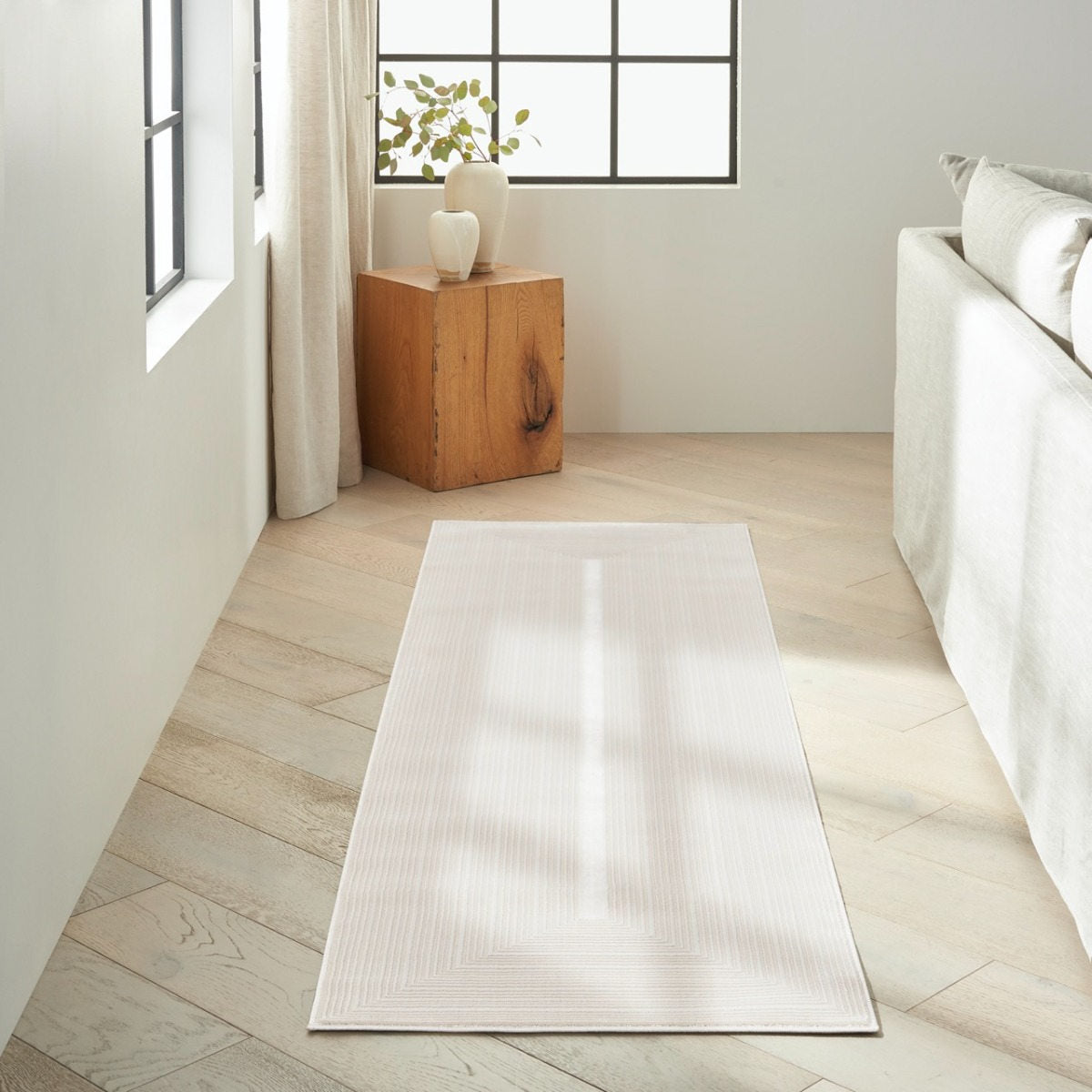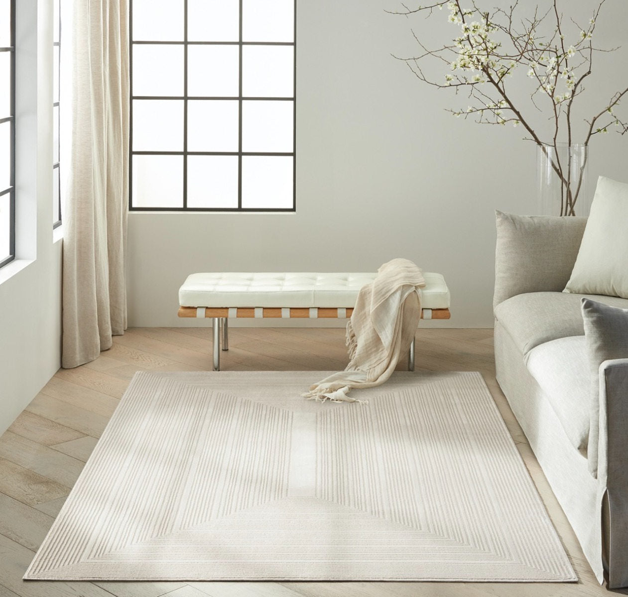 The Calvin Klein Irradiant Ivory (CK024 IRR02) rug brings softness to the floor in every sense — in texture, tone, and presence. With its layered ivory, off-white and subtle grey brushwork, this design captures the essence of minimal elegance without feeling cold or flat.