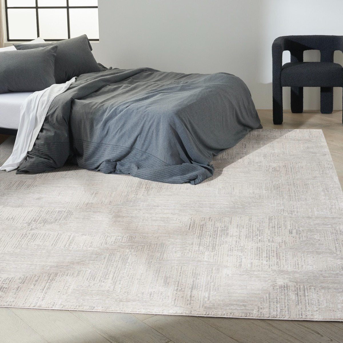 The Calvin Klein Irradiant Silver (CK024 IRR01) rug is a quiet showstopper — minimalist in palette, but rich in visual texture. Its abstract wash of light grey, pearl and silvery white tones gives the impression of mist or soft movement, like light dancing across water.