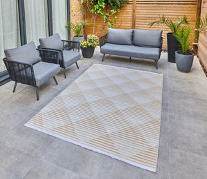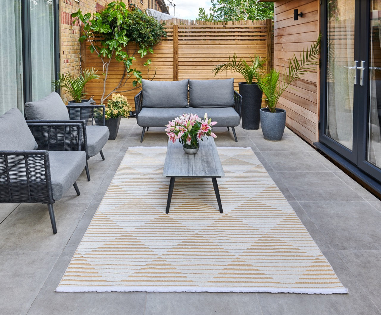 Indoor & Outdoor Ready – UV-resistant, easy-care flatweave