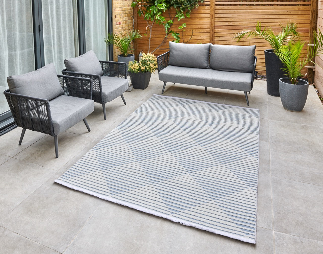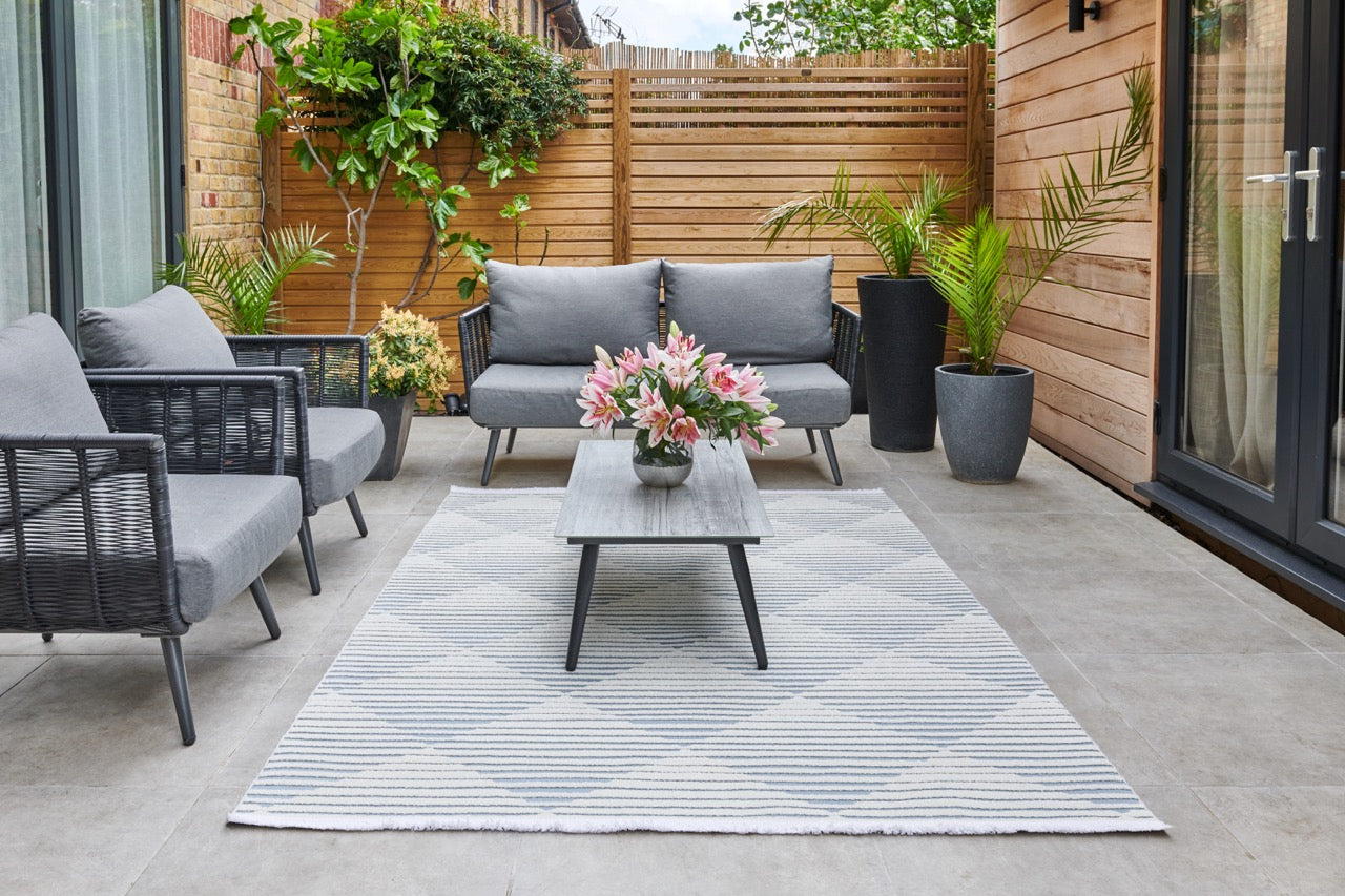 Flatwoven from weatherproof polypropylene, this rug is both light and durable. Use it under a garden dining table, in a covered patio, or inside your home where practical beauty is key. It resists UV rays, stains and wear — and requires minimal upkeep.