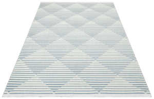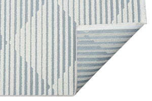 The Jazz Blue JAZ08 rug by Concept Looms adds structure without heaviness. Its softly faded blocks of sky blue, beige and stone grey form a pattern that feels architectural yet relaxed — ideal for creating defined zones in open or outdoor spaces.