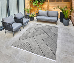 Introducing the Concept Looms Jazz Grey Black Jaz16 rug, perfect for both indoor and outdoor spaces. Made from durable polypropylene, this rug is anti-allergic and anti-static, making it ideal for high-traffic areas like the living room, dining room, or kitchen. The modern geometric design in shades of grey and black adds a stylish touch to any room. Available in 160 x 220 cm and 190 x 290 cm sizes, this versatile rug is a must-have for any home. Made in Turkey, this woven carpet is perfect for adding a touch of sophistication to your space.