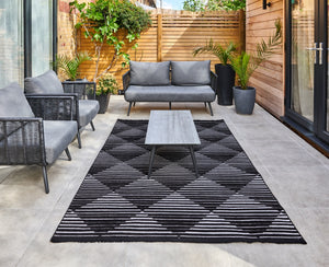 The Jazz Grey JAZ09 by Concept Looms is a rug that speaks through texture and tone. With broad, overlapping stripes in charcoal, concrete grey and warm beige, this design adds depth and structure to both indoor and outdoor spaces.