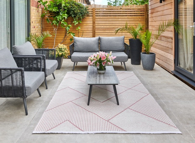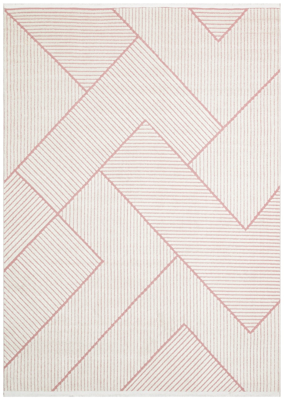The Jazz Rose JAZ14 rug by Concept Looms brings a bolder edge to the soft rose palette. With graphic colour blocks in clay rose, sand, ivory and pale terracotta, it strikes a balance between gentle warmth and clean structure — ideal for modern living.