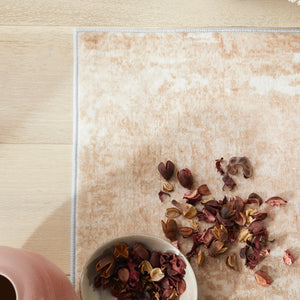 The Liberty LIB105 Spring brings a warm, serene glow to your space with its soft blush tones and sandy neutrals fading gently into each other. The design feels calm and understated, making it an ideal lightweight rug for modern rooms that need softness without visual clutter. Its low-profile body moves effortlessly under furniture and doors, giving you a practical washable rug that blends style with pure ease.