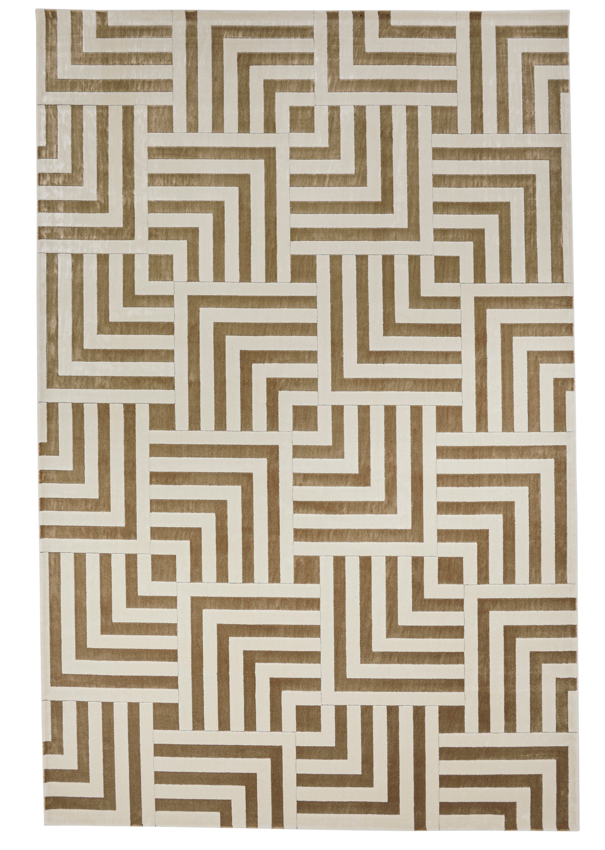 Woven from a blend of polyester and viscose, the surface has a subtle sheen that catches the light, giving the rug a refined, silk-like finish. Despite its elegant appearance, the construction is strong and low-maintenance, making it suitable for living rooms, bedrooms or soft-toned offices.