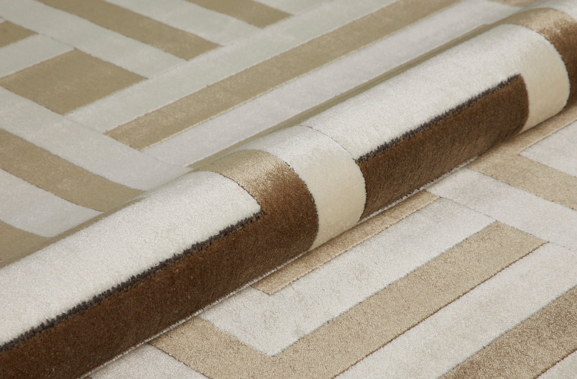 The LUG01 is one of several refined colourways in the Lugano series — a curated set of soft-touch rugs combining architectural pattern with a muted, elegant finish.