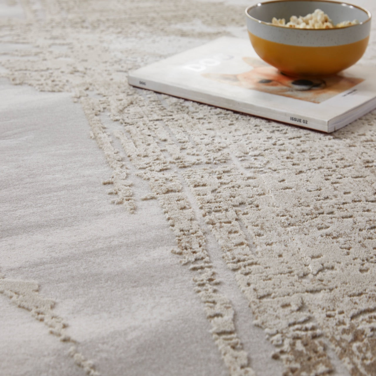 The Concept Looms Skyline SK103 Ivory Beige rug features a warm, layered abstract design inspired by soft architectural surfaces. Ivory tones are blended with gentle beige accents, creating a calm and natural look with subtle visual depth.