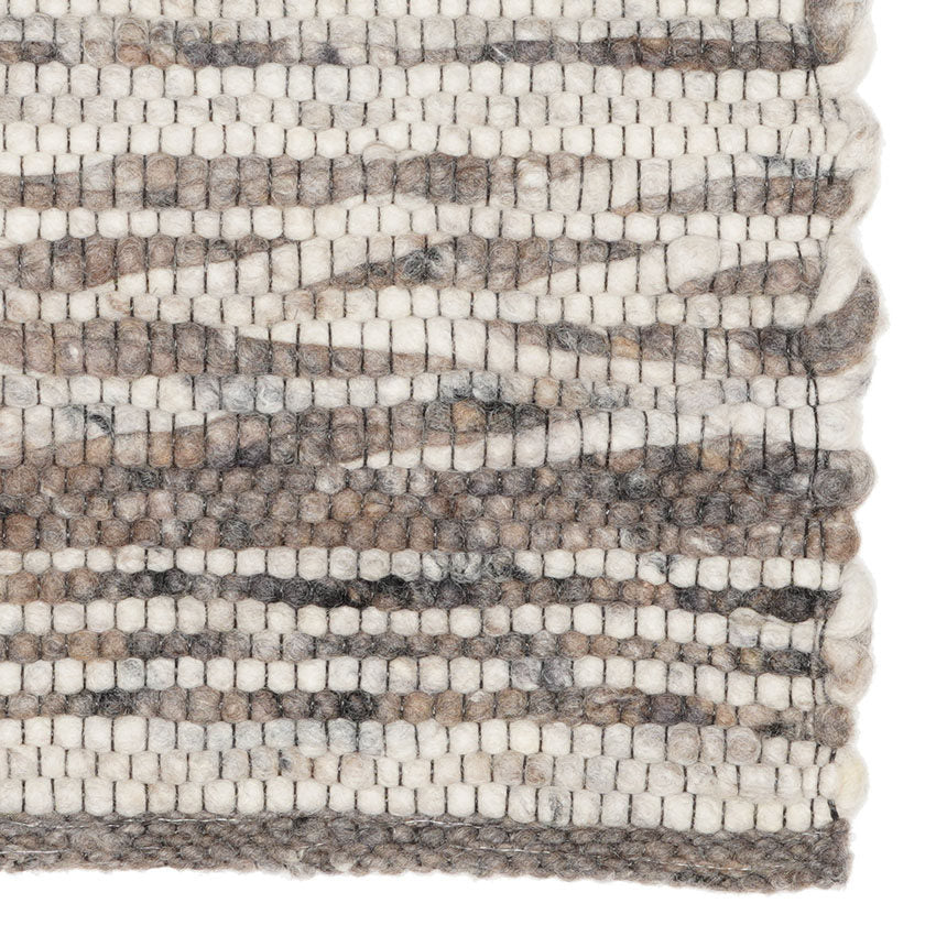 Caserta 03 is a study in natural restraint. Its soft bands of taupe, warm brown and sandy ivory blend gently across the surface, lending quiet motion without attention-seeking contrast. The palette reflects a refined industrial sensibility with the warmth of artisanal touch.