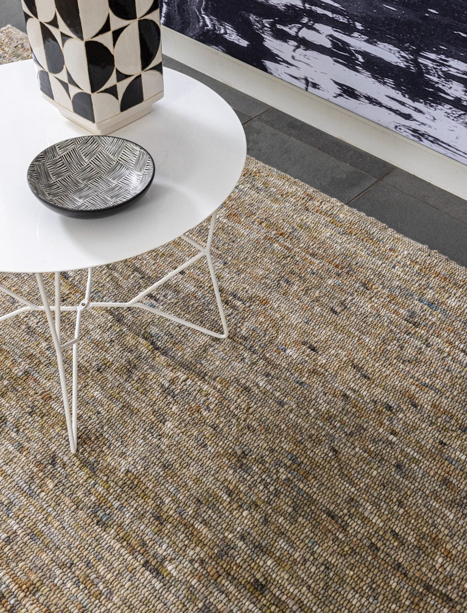 The natural interplay of tones—smoky grey, faded taupe, and earthy mustard—feels both contemporary and timeless. Thanks to its wool-jute composition, Diamante 08 offers a raw yet refined texture, making it suitable for both neutral and colour-rich interiors.