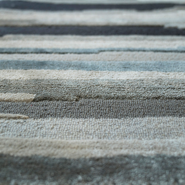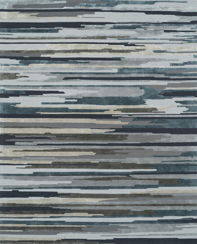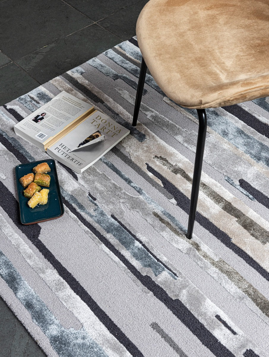 Genova 01 brings movement and stillness together. With layered shades of blue and grey-blue, this rug creates a sense of calm depth — like a clouded sky or the shifting surface of water. The abstract lines aren’t printed, but carved into the surface, giving it a sculptural feel that plays with light, texture, and space.