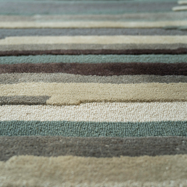 Part of the Genova series by De Munk Carpets, this rug is handtufted in a luxurious blend of wool and viscose. The design features abstract lines that are not just visible, but sculpted — creating subtle elevation and depth. The wool gives the rug weight and warmth, while the viscose threads introduce a soft sheen that catches light as you move around the room.