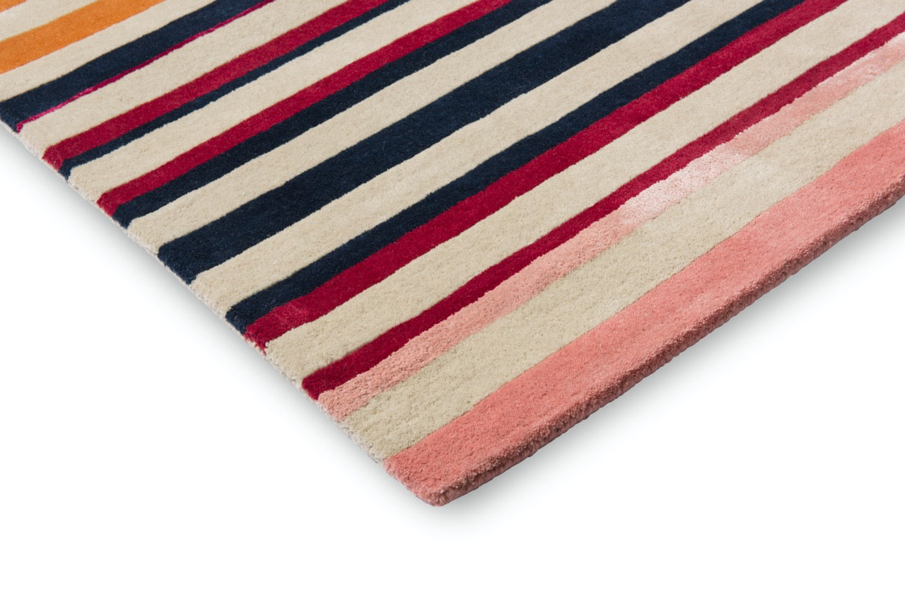 Ideal for modern and eclectic interiors, this rug pairs beautifully with neutral furnishings, natural wood accents, and soft textiles. Add cushions and throws from our curated textile collection to complement the lively stripes and create a cozy yet energetic atmosphere.