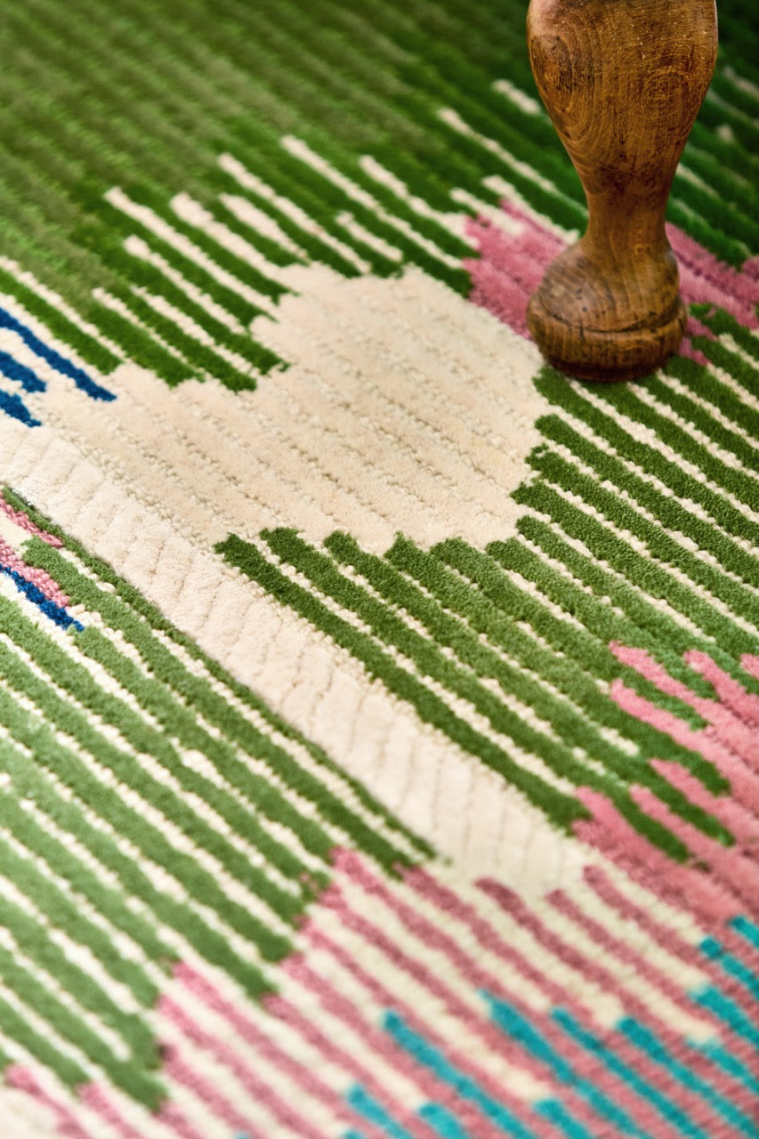 The Harlequin Wilderness Peridot Emerald 144507 is a bold design rug — where expressive brushwork and rich greens meet the luxury of handtufted wool and viscose.