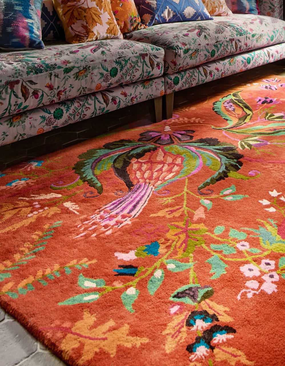 Imagine the warmth of the vibrant orange tones, effortlessly brightening any area and adding a touch of sophistication. The floral pattern brings a sense of nature indoors, creating a serene atmosphere that promotes relaxation and comfort.