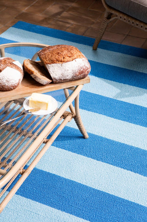 The Laura Ashley Lille Sky Blue outdoor rug 480008 brings a soothing splash of sky blue stripes to your outdoor spaces. Crafted from weather-resistant materials, this rug is designed to withstand the elements while maintaining its vibrant color and easy-care nature.