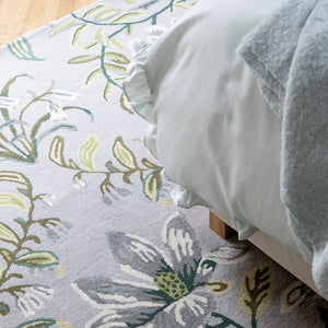 Step onto the Laura Ashley Parterre Pale Sage 81707 handtufted wool rug and let its gentle hues and artisanal quality transform your space.
