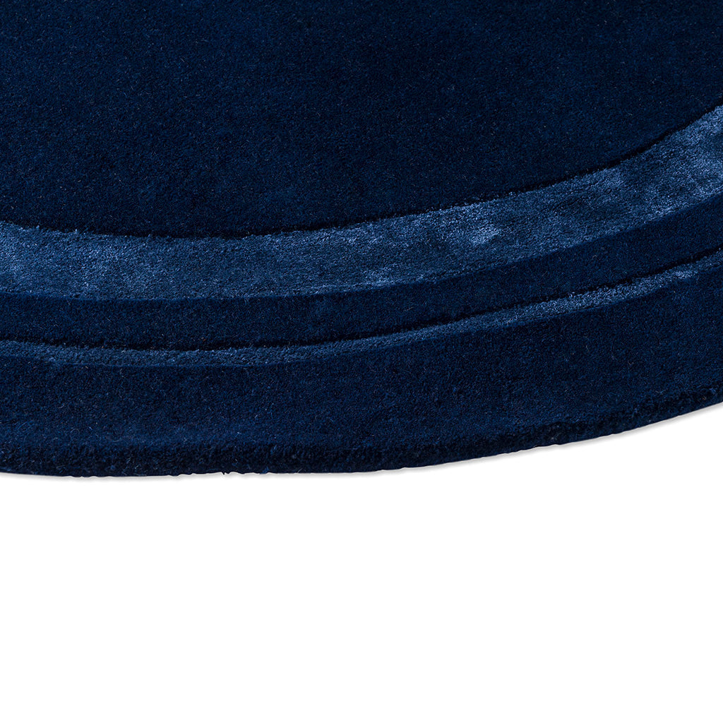 The rich midnight color adds depth and drama, while the minimalist border offers refined structure that complements a variety of interior styles. This rug is perfect for living rooms, bedrooms, or dining spaces seeking a blend of classic elegance and modern simplicity.