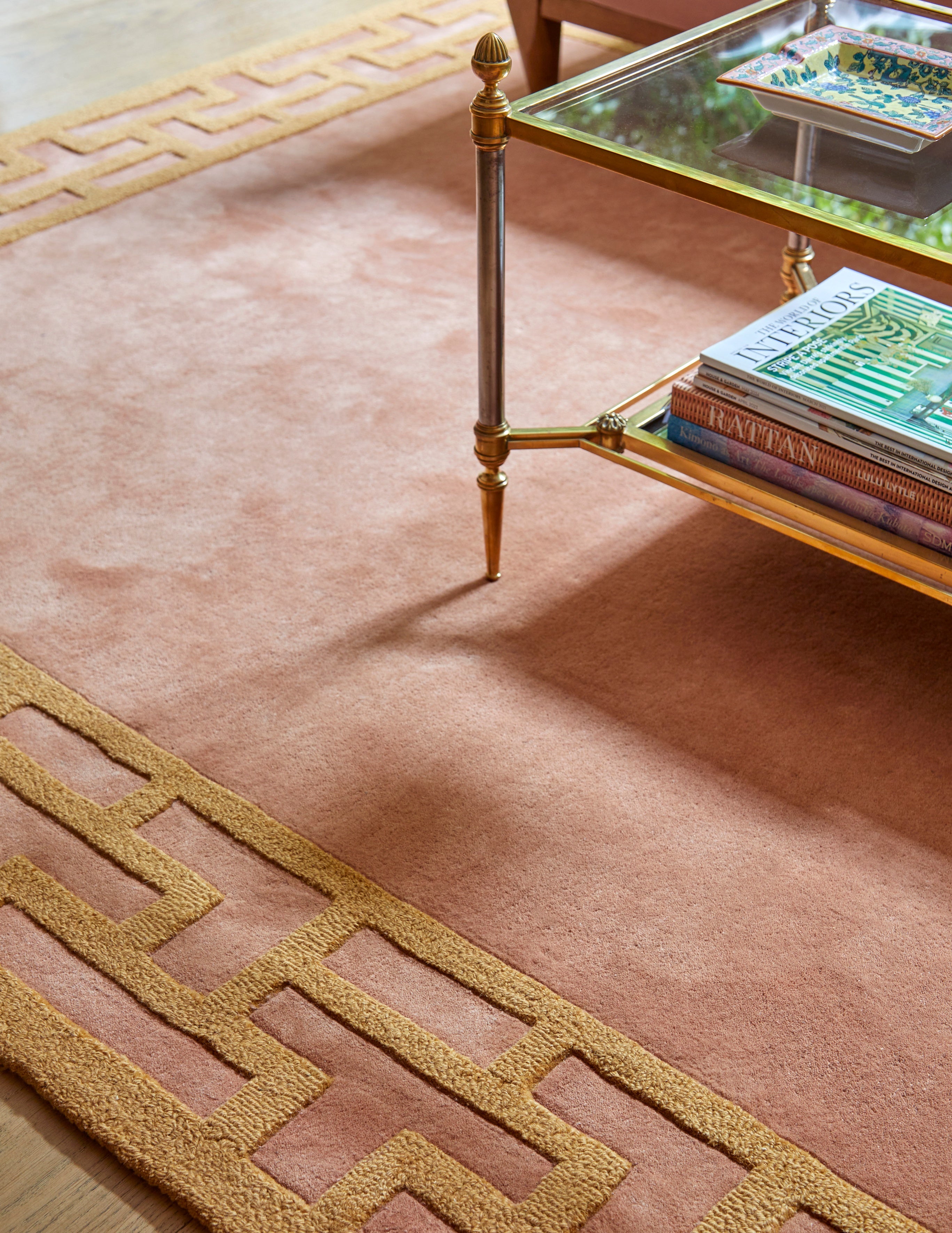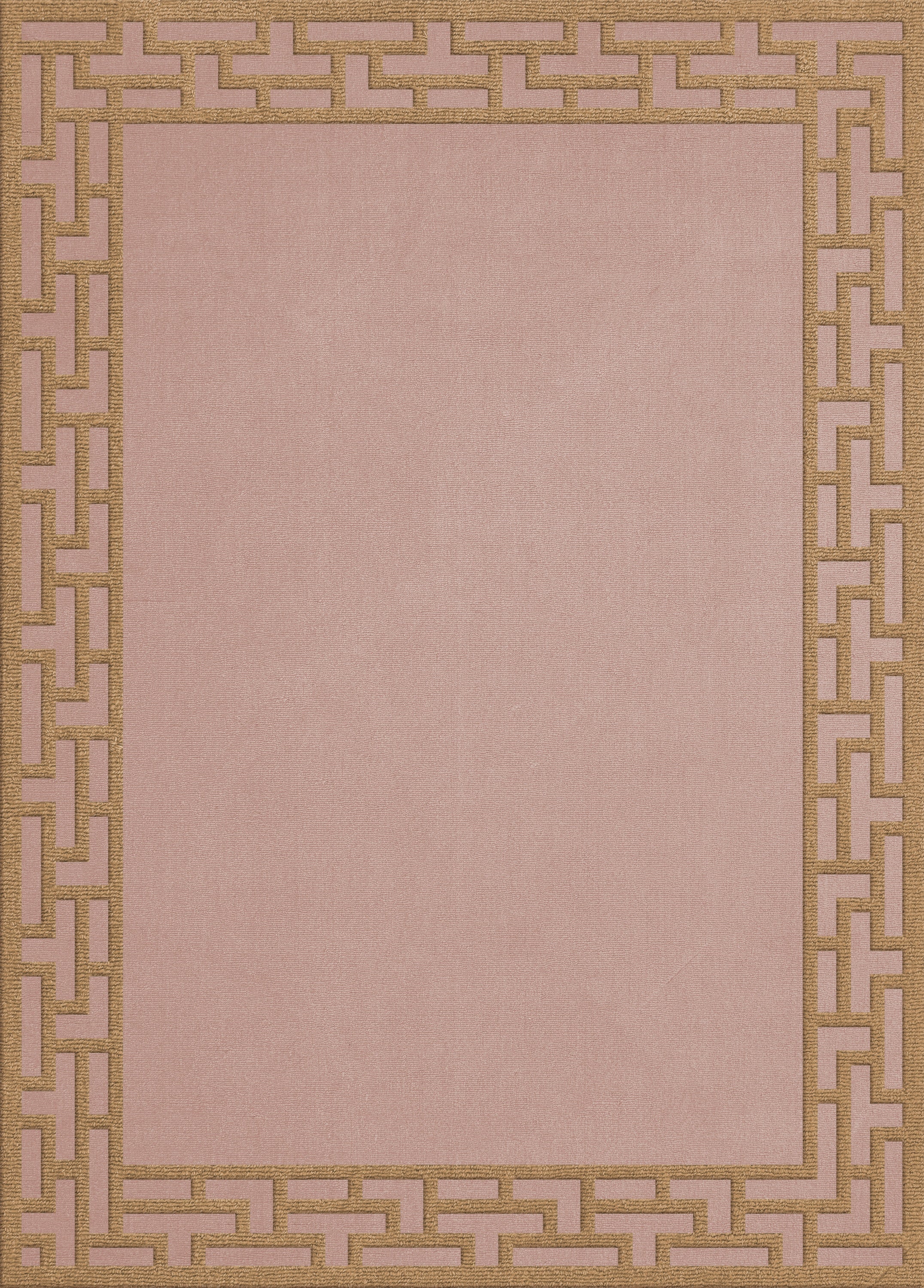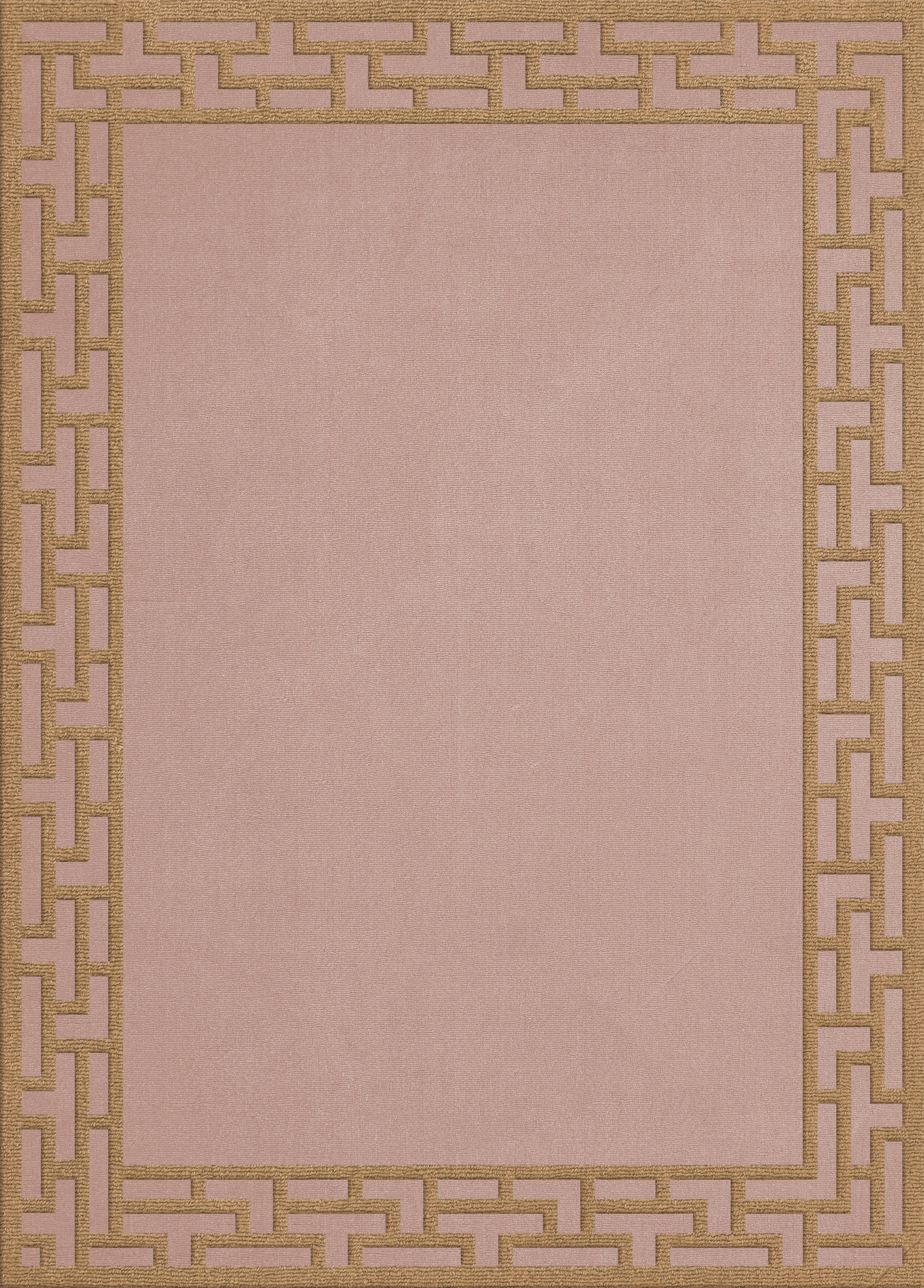 This handtufted wool rug from the Alice Crawley collection by Layered features a soft rose-toned centre framed by a deeper terracotta border. The Indocine Mellow Rose design is a study in balance — merging warm, earthy colours with sharp geometry to create a rug that feels both calming and confidently structured.
