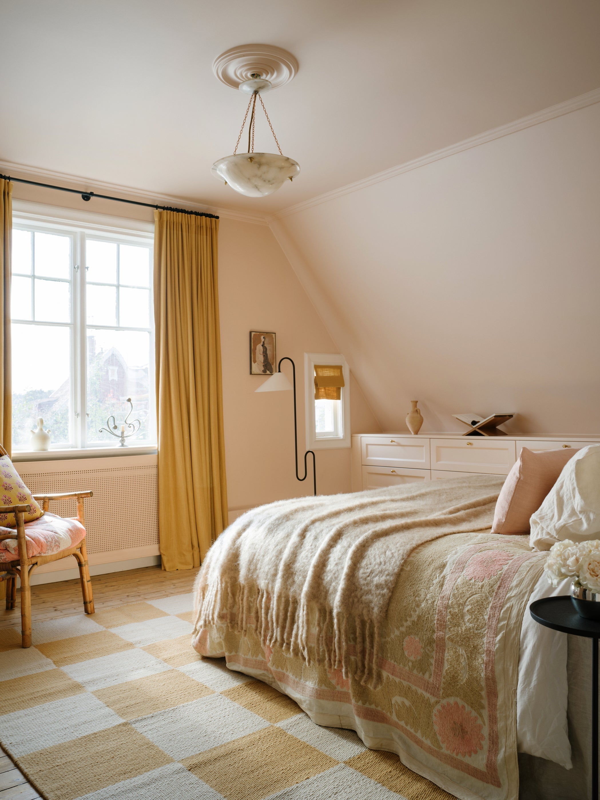 Let the rug shine as the focal point. Pair with cream walls, warm wood tones and rich textures like velvet or corduroy. Add curved shapes or vintage accents to echo the retro flair of the checker pattern.
