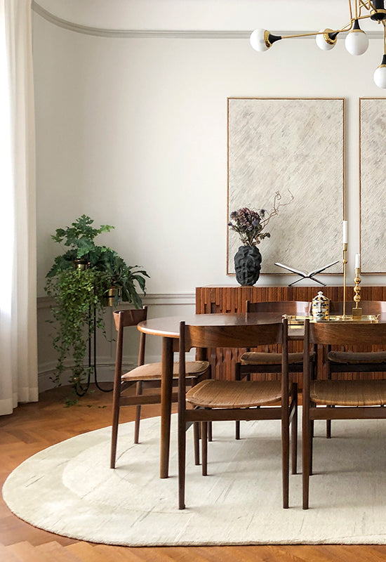 Elevate your home with the Layered Circular Bone White rug—where style meets functionality.