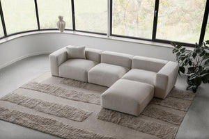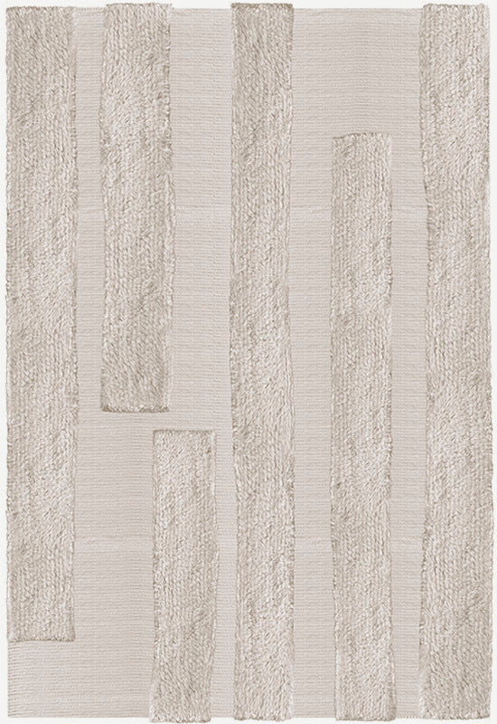 This handwoven wool rug from Layered’s Punja Bricks collection is a quiet statement of structure and softness. Sand Melange features a refined geometric rhythm — an abstract brick-inspired pattern in warm beige and off-white tones, brought to life through a traditional Punja weaving technique.