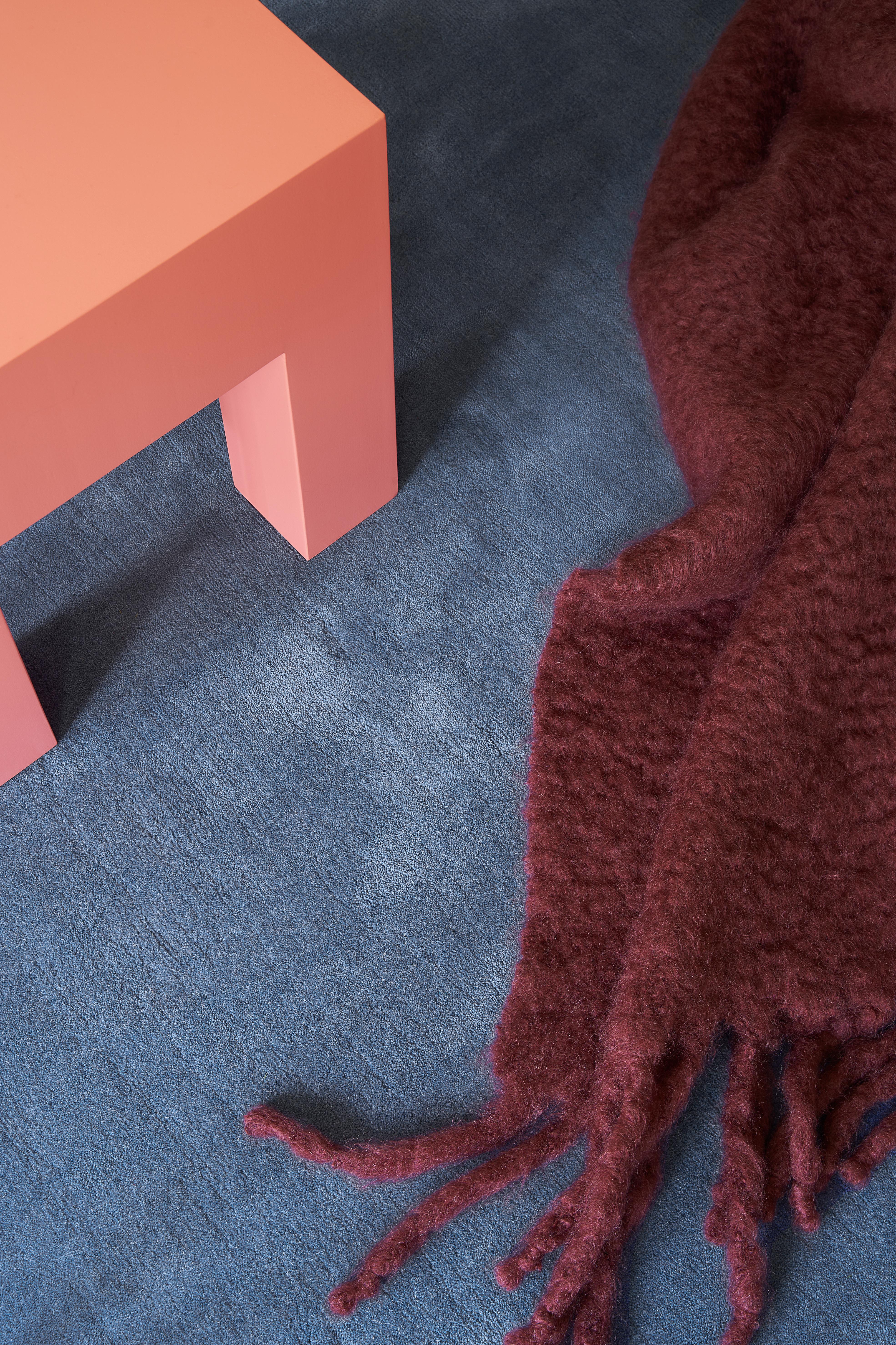 Transform your space with the Layered Solid Wool Cornflower Blue rug. Made in India, this handwoven masterpiece brings a touch of modern elegance to any room. The rich blue hue not only adds a color accent but also creates a calming atmosphere, perfect for dining rooms, living rooms, or bedrooms.