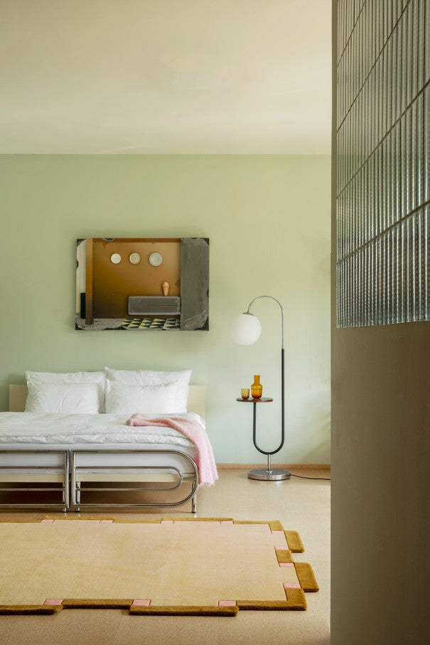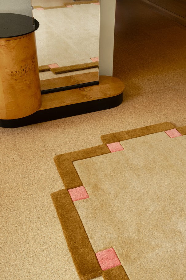 Handtufted in India from premium-quality wool, this rug reflects Scandinavian artistry and architectural rhythm. The structured border design makes it both eye-catching and harmonious, ideal for interiors that value texture, tone and timeless design.