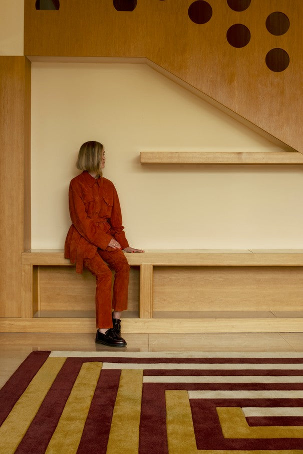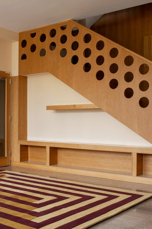 Each rug is handmade in India using premium natural wool, resulting in a dense, tactile surface that feels both elegant and enduring. Its sculptural texture and graphic contrast make it ideal for open living spaces, contemporary lofts or artistic home studios — anywhere design and comfort belong together.