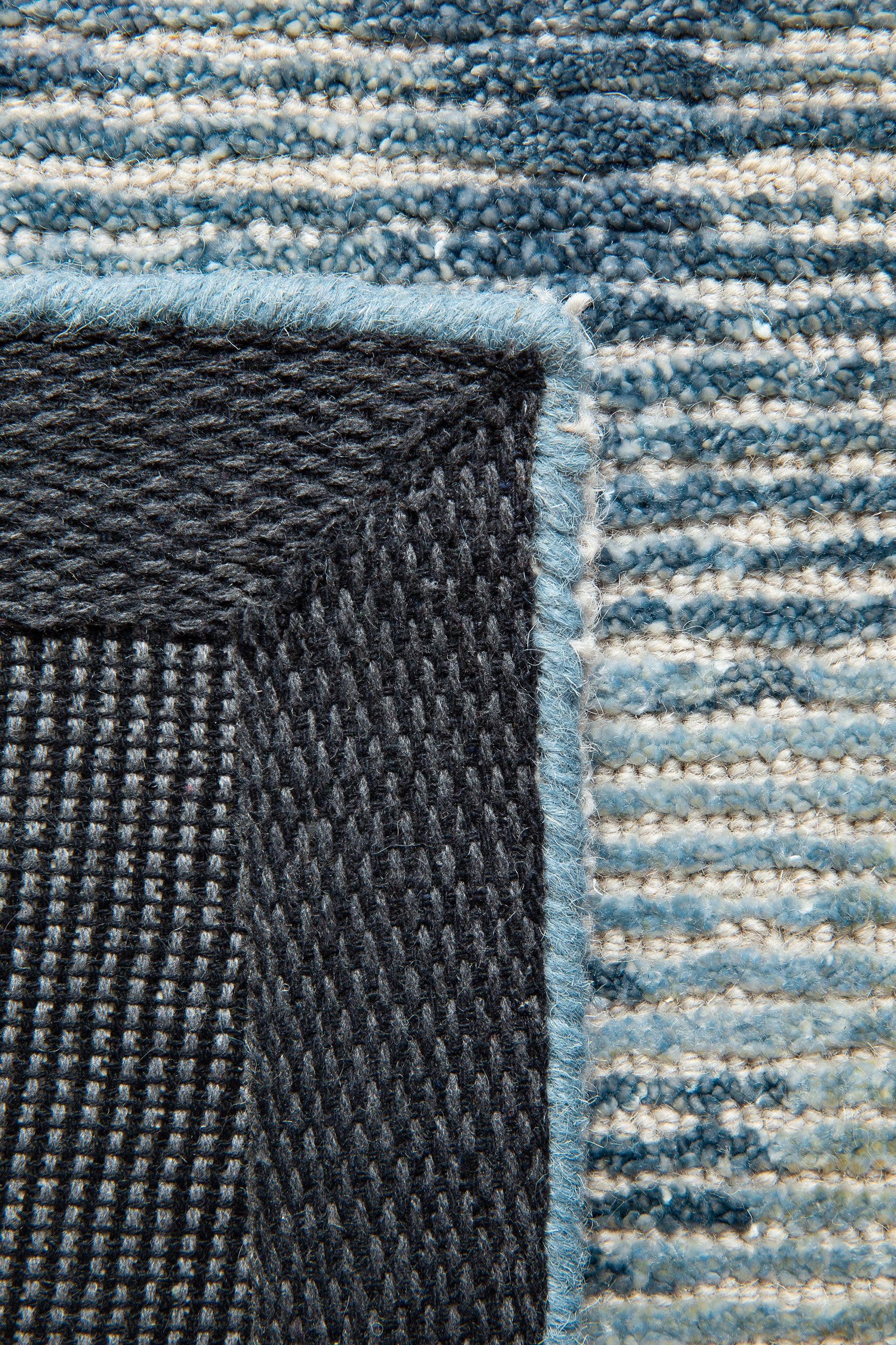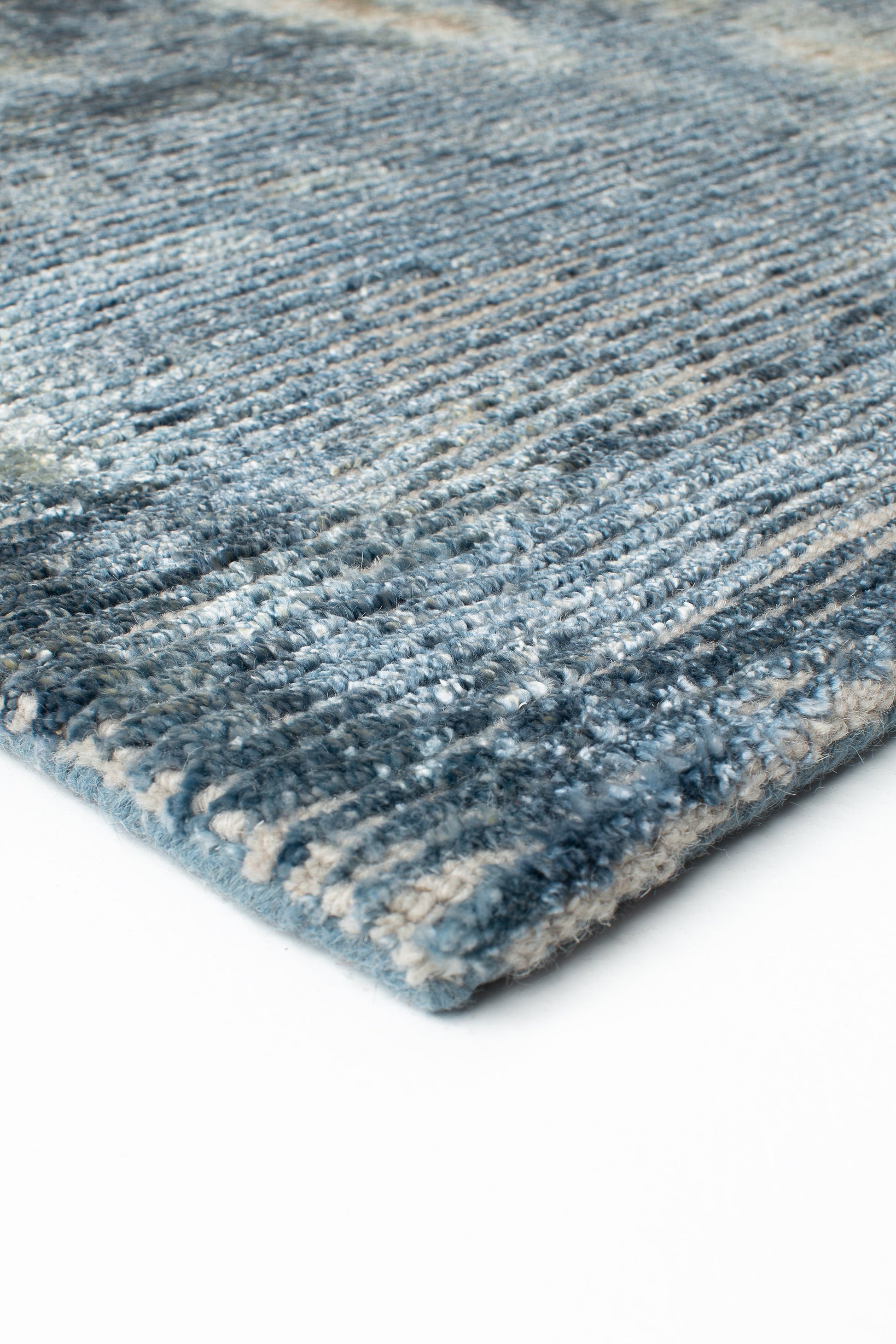 Handmade in India, this rug is tufted from a premium blend of wool and viscose. Wool ensures resilience and warmth, while viscose adds a gentle sheen for a sophisticated finish. The high-low texture highlights the abstract design, giving the rug a layered, tactile appearance.
