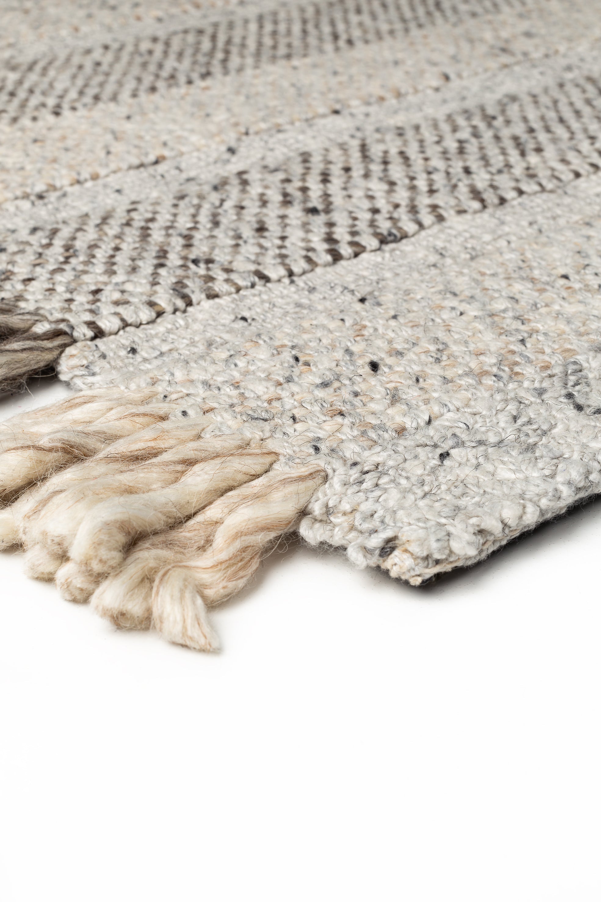 The Ligne Pure Grade 241.001.900 is more than just a rug—it's a rhythmic texture for your floor. Handwoven using premium New Zealand wool with a touch of viscose, this design combines natural resilience with a soft, elegant sheen. The subtle striped structure, featuring neutral beige and grey tones, creates depth and movement, bringing an understated sculptural quality to your interior.