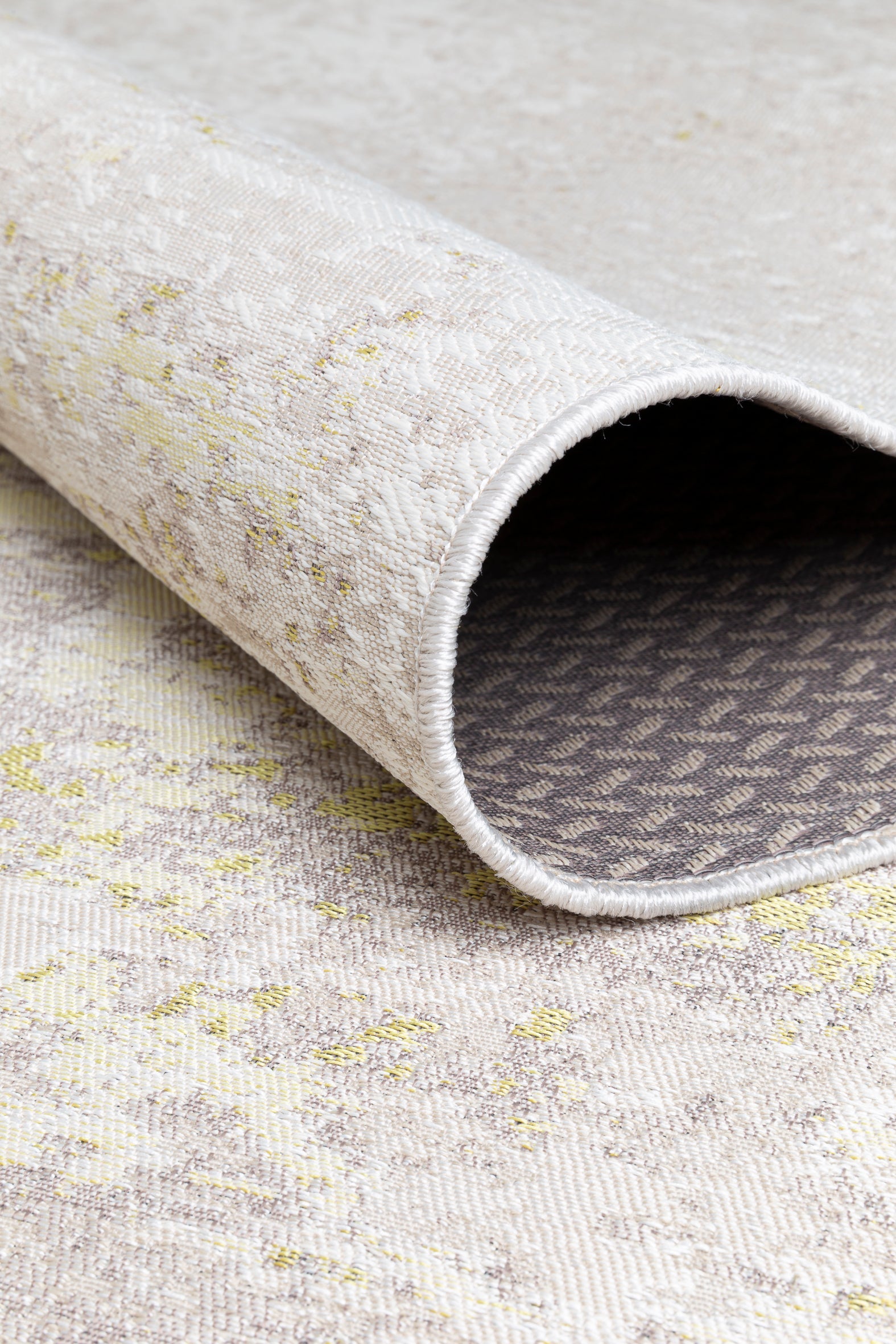 Soft beige-ivory base with warm yellow accents for a lively touch